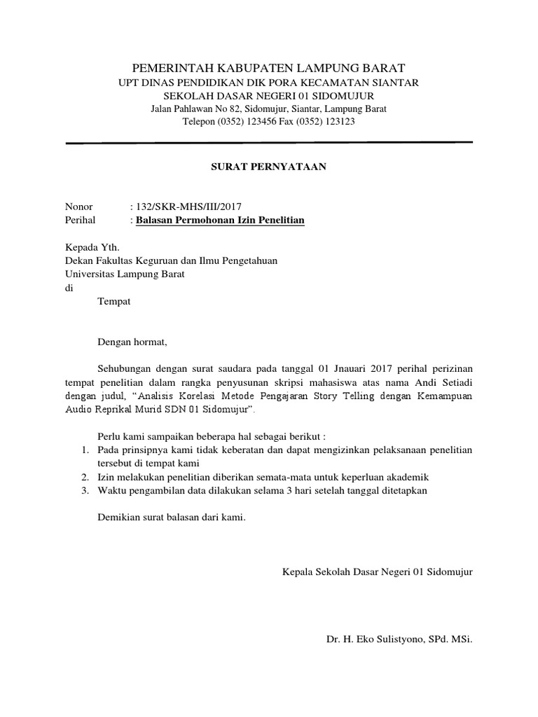 Contoh Surat Balasan Penelitian Gudang Surat from reader015.dokumen.tips Lampiran 1 surat ijin survei awal penelitian pdf. Perlu anda tahu bahwa contoh surat balasan penawaran penting untuk anda pelajari karena nanti akan berguna sebagai respon terhadap penawaran yang dilakukan dimana kemungkinan memiliki nilai transaksi yang bisa dikatakan cukup besar. Contoh surat balasan izin penelitian sekolah yang benar. Langsung saja, simak pembahasan lengkapnya di bawah ini! Alamat email anda tidak akan dipublikasikan. Surat keterangan penelitian bakesbangpol jepara. Contoh surat keterangan kerja surat keterangan kerja di gunakan oleh karyawan atau seseorang yang memiliki ikatan kerja untuk memberikan penjelasan atau informasi bahwasanya kita adalah sebagai pekerja dan sedang bekerja. Lampiran 1 surat balasan permohonan ijin penelitian.